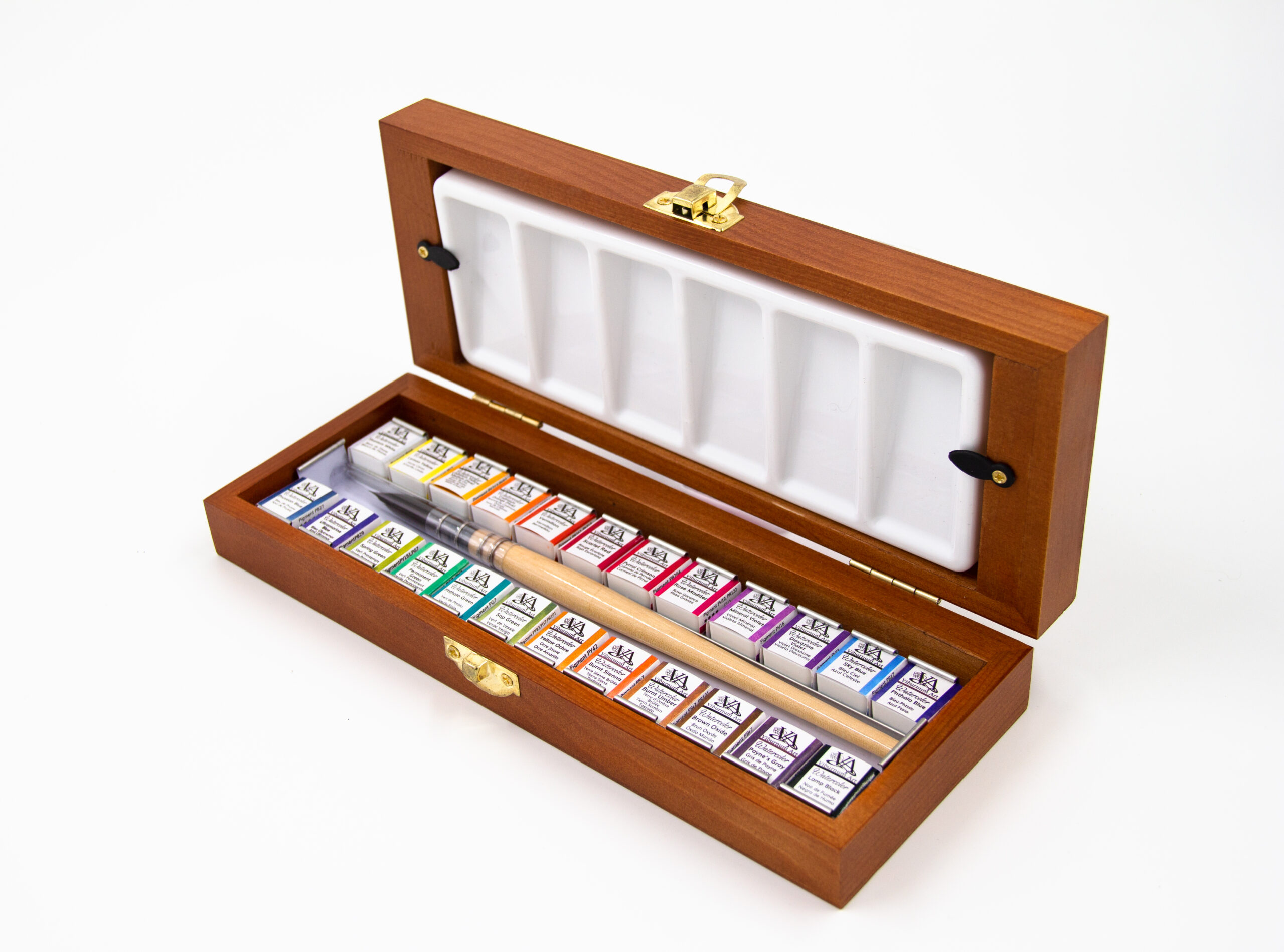 The high-quality wooden box included with this professional water color and paint brush set is not just a sturdy guardian for your watercolor pans, but a beautiful gift for your friends and family.